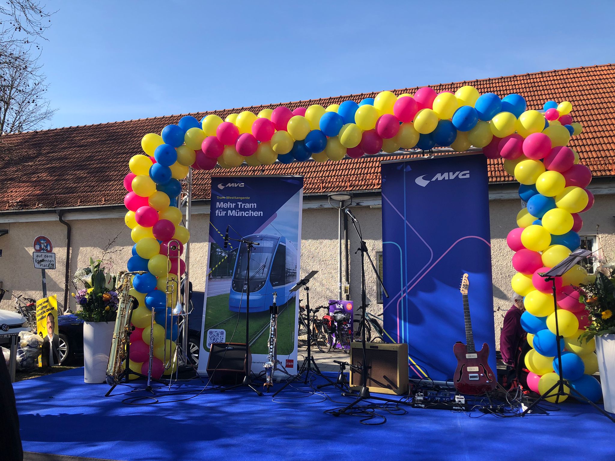 Die Eröffnung der Tramlinie 14 wurde mit einem großen Fest auf dem Laimer Anger gefeiert.. Gleich spuit die Musi! Foto: ©Margit Meier