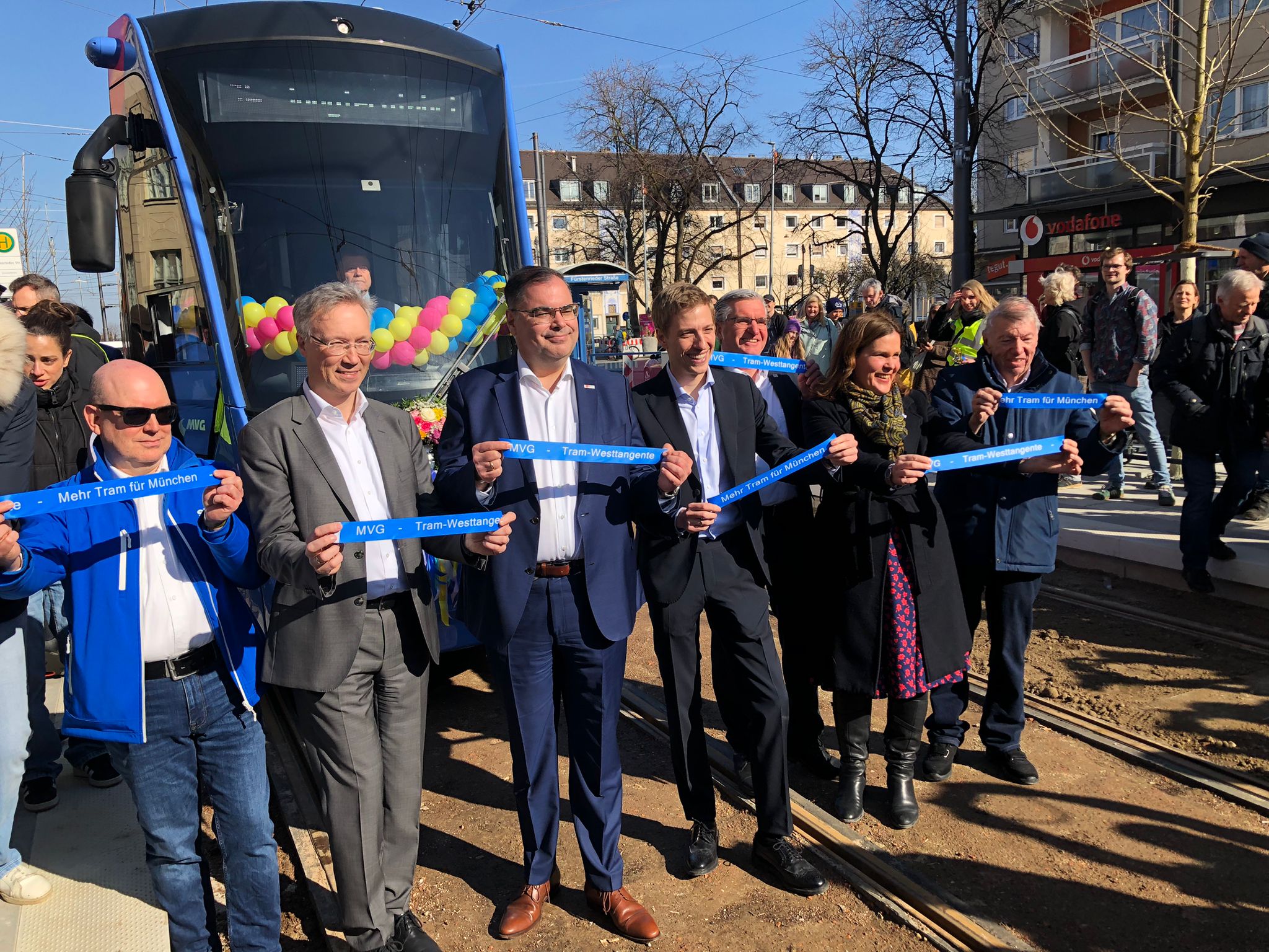 Das Band ist zerschnitten, jetzt rollt die erste Tram auf der neuen Strecke. Foto: ©Margit Meier