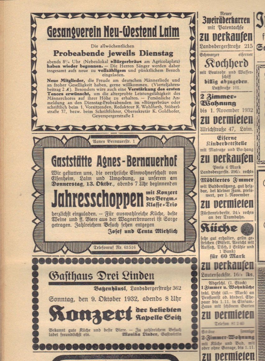 Der Historische Verein Laim e.V. (nachfolgend „Betreiber“) übernimmt keinerlei Gewähr für die Aktualität, Korrektheit, Vollständigkeit oder Qualität der bereitgestellten Informationen auf [Ihre Website-Adresse] und den damit verlinkten Seiten.